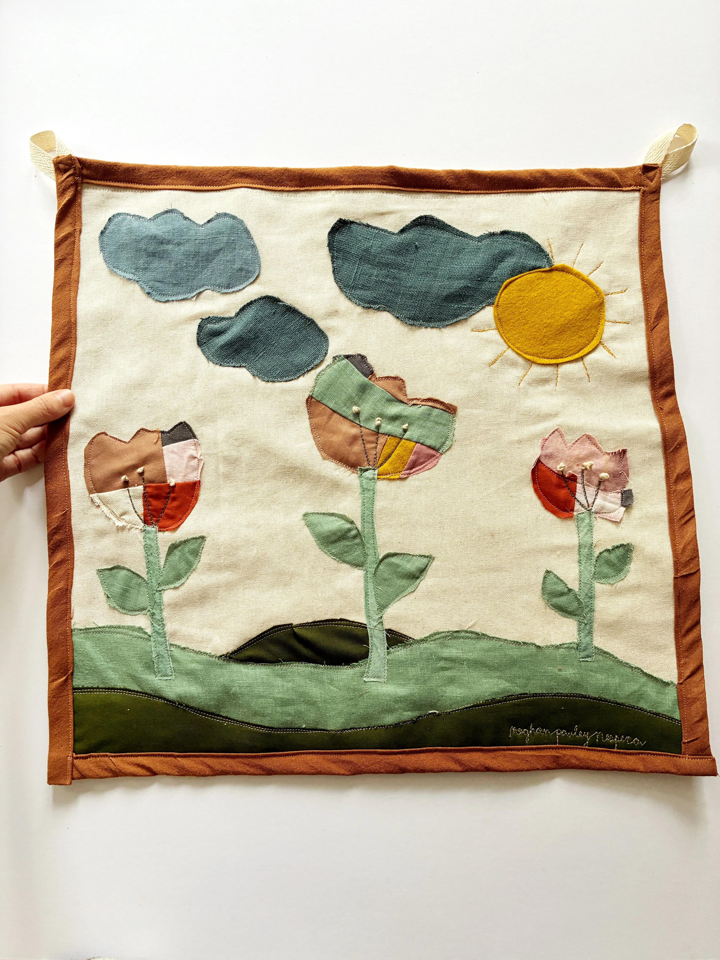 Each piece is one of a kind, full of hand painted fabrics + papers, botanically dyed cloth, repurposed fibers and poetry.. all layered and stitched, hand embroidered to create truly heirloom pieces full of goodness.